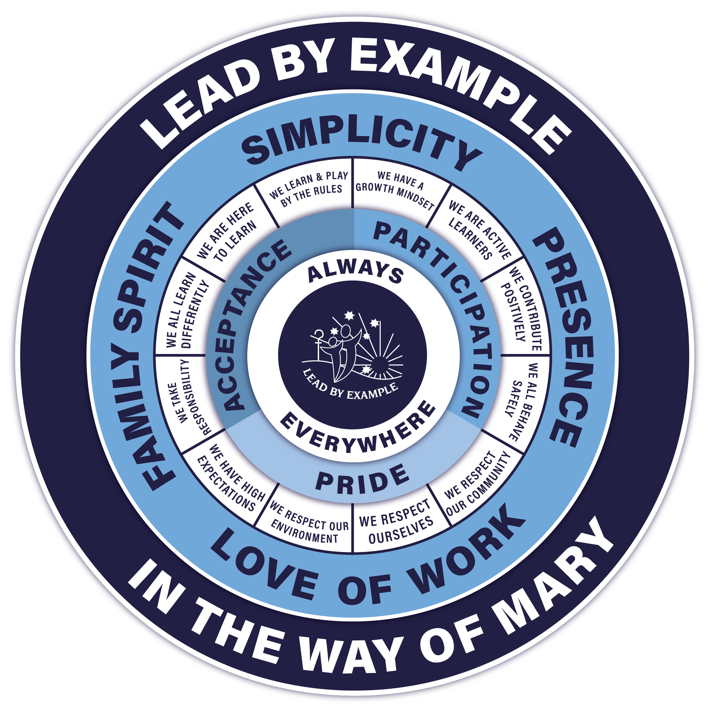 - We seek to give joyful witness, through our motto “Lead By Example”, as shown to us by our patron saint St Marcellin Champagnat.