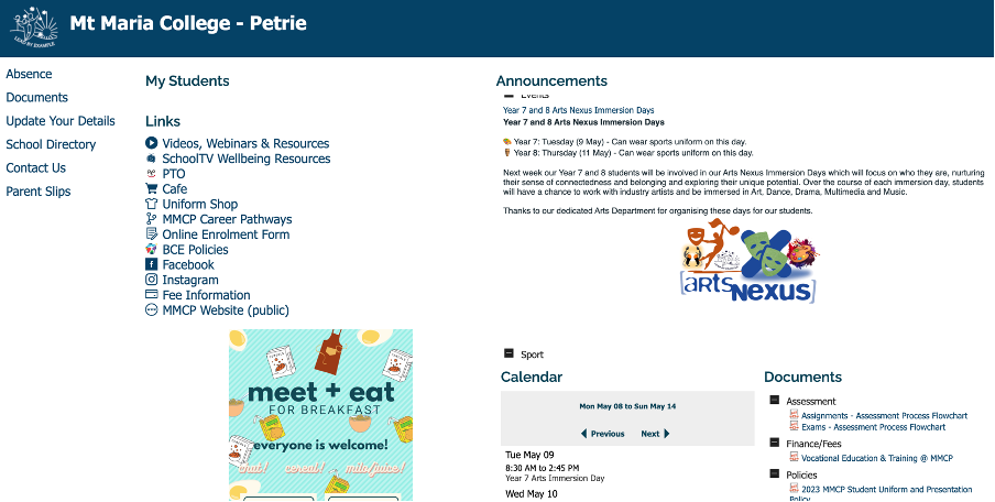 Parents of students can access our Parent Portal here: https://extranet.bne.catholic.edu.au/parent/mmcp